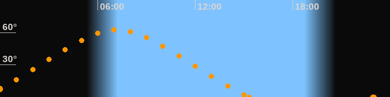 Höchster Stand (Kulmination)07:10 Uhr (h = 62.6°)