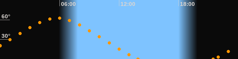 Höchster Stand (Kulmination)05:43 Uhr (h = 62.6°)