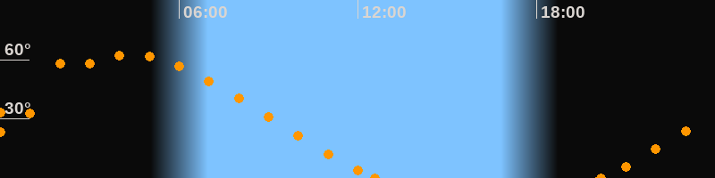 Höchster Stand (Kulmination)04:23 Uhr (h = 62.6°)