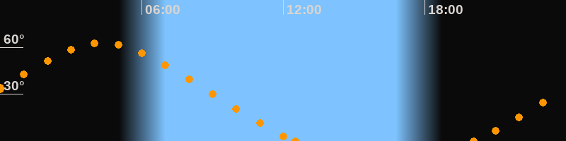 Höchster Stand (Kulmination)04:19 Uhr (h = 62.6°)