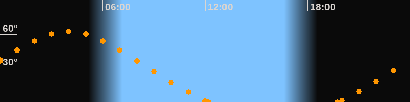 Höchster Stand (Kulmination)03:59 Uhr (h = 62.6°)