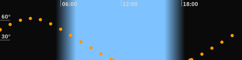 Höchster Stand (Kulmination)03:03 Uhr (h = 62.7°)