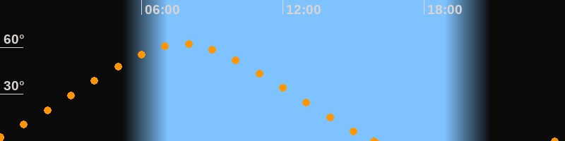 Höchster Stand (Kulmination)07:45 Uhr (h = 62.3°)