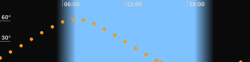 Höchster Stand (Kulmination)07:18 Uhr (h = 62.3°)