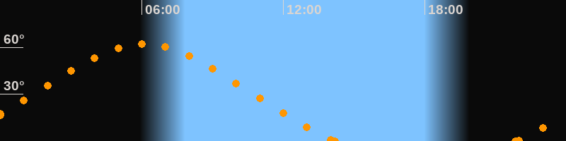 Höchster Stand (Kulmination)06:04 Uhr (h = 62.3°)