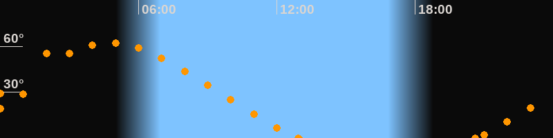 Höchster Stand (Kulmination)04:48 Uhr (h = 62.3°)