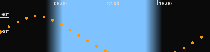 Höchster Stand (Kulmination)04:12 Uhr (h = 62.3°)