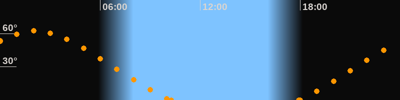Höchster Stand (Kulmination)02:07 Uhr (h = 62.4°)