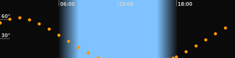 Höchster Stand (Kulmination)01:54 Uhr (h = 62.4°)