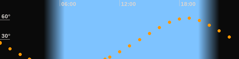 Höchster Stand (Kulmination)18:43 Uhr (h = 62.7°)