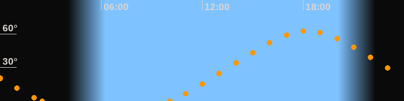 Höchster Stand (Kulmination)18:16 Uhr (h = 62.6°)
