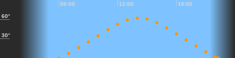 Höchster Stand (Kulmination)14:09 Uhr (h = 62.3°)