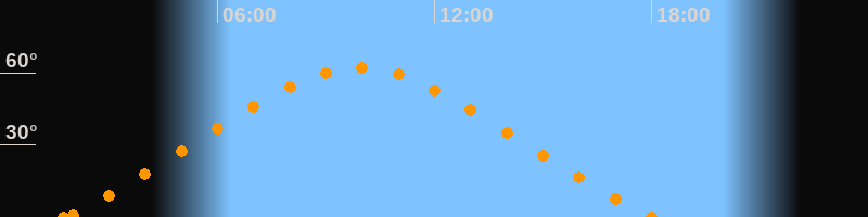 Höchster Stand (Kulmination)09:55 Uhr (h = 61.9°)