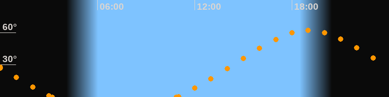 Höchster Stand (Kulmination)19:01 Uhr (h = 62.3°)