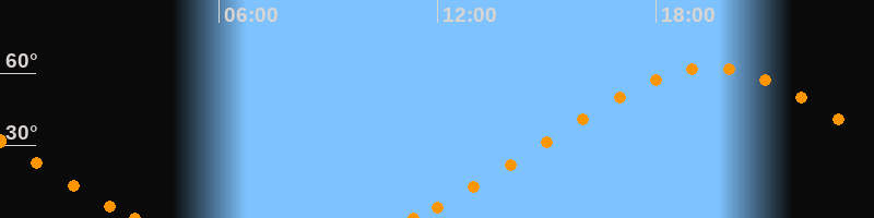 Höchster Stand (Kulmination)19:30 Uhr (h = 62.3°)