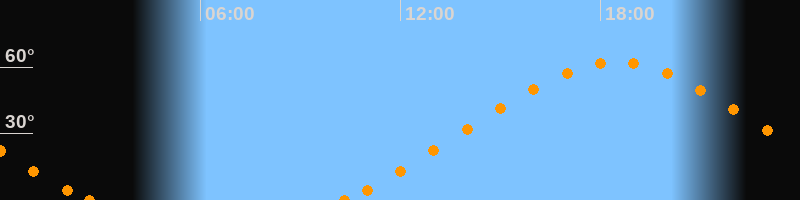 Höchster Stand (Kulmination)18:28 Uhr (h = 62.3°)