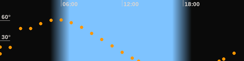 Höchster Stand (Kulmination)05:36 Uhr (h = 61.1°)