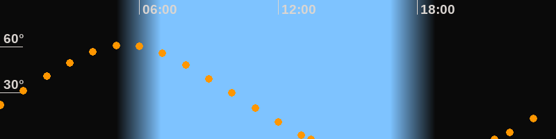 Höchster Stand (Kulmination)05:25 Uhr (h = 61.1°)