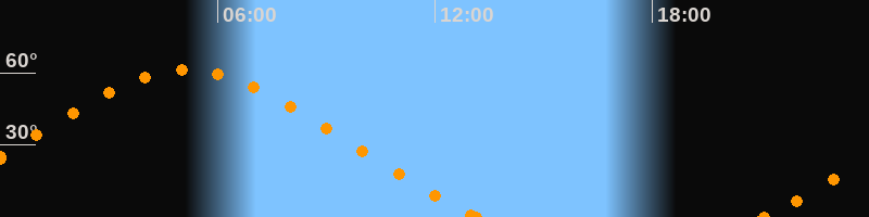 Höchster Stand (Kulmination)05:09 Uhr (h = 61.1°)