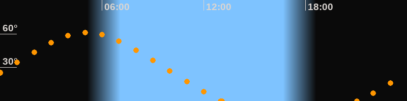 Höchster Stand (Kulmination)05:05 Uhr (h = 61.1°)