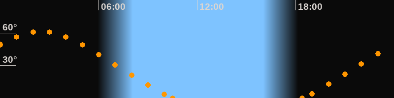 Höchster Stand (Kulmination)02:28 Uhr (h = 61.2°)