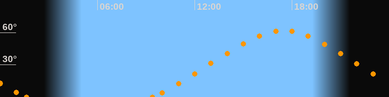 Höchster Stand (Kulmination)17:29 Uhr (h = 61.7°)