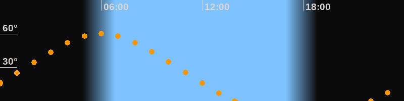 Höchster Stand (Kulmination)06:00 Uhr (h = 60.3°)