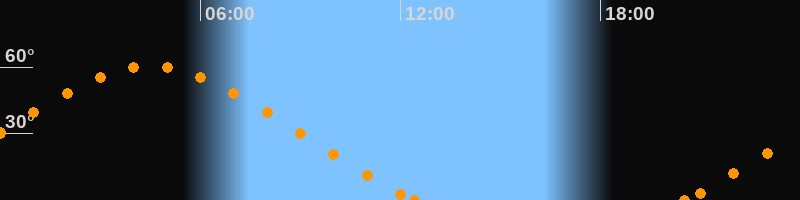 Höchster Stand (Kulmination)04:30 Uhr (h = 60.3°)