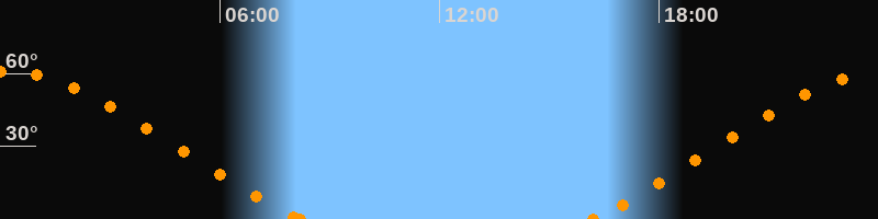 Höchster Stand (Kulmination)00:09 Uhr (h = 60.7°)