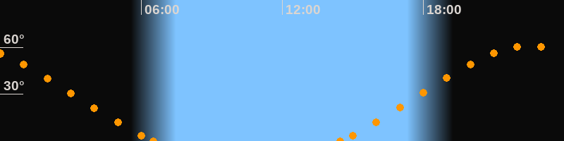 Höchster Stand (Kulmination)22:26 Uhr (h = 60.9°)