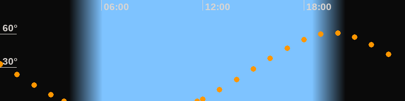 Höchster Stand (Kulmination)19:42 Uhr (h = 61.1°)