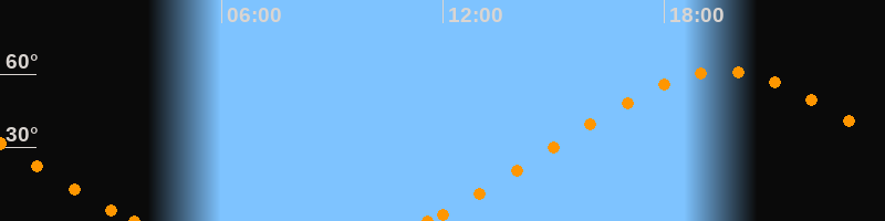 Höchster Stand (Kulmination)19:34 Uhr (h = 61.1°)