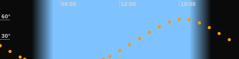 Höchster Stand (Kulmination)18:23 Uhr (h = 61.1°)