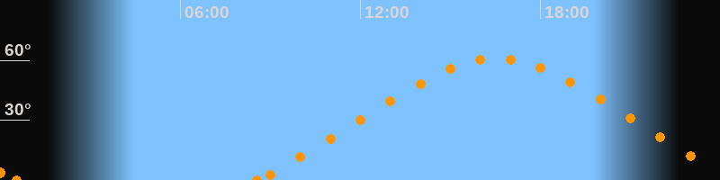 Höchster Stand (Kulmination)16:32 Uhr (h = 60.9°)