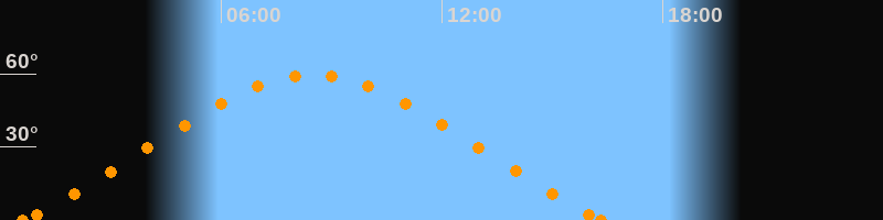 Höchster Stand (Kulmination)08:30 Uhr (h = 59.5°)