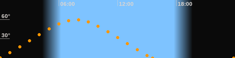 Höchster Stand (Kulmination)07:45 Uhr (h = 59.5°)