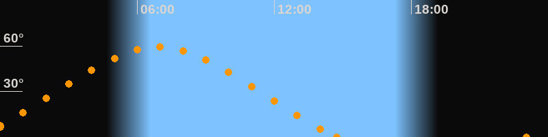 Höchster Stand (Kulmination)06:55 Uhr (h = 59.4°)