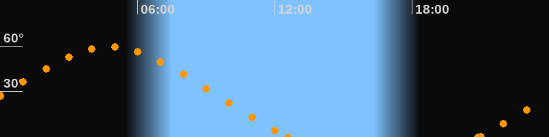 Höchster Stand (Kulmination)04:46 Uhr (h = 59.4°)