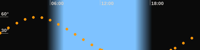 Höchster Stand (Kulmination)04:22 Uhr (h = 59.4°)