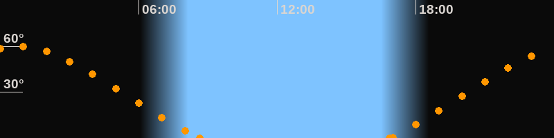 Höchster Stand (Kulmination)00:43 Uhr (h = 59.8°)