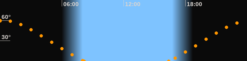 Höchster Stand (Kulmination)00:14 Uhr (h = 59.8°)
