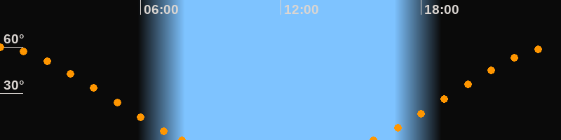 Höchster Stand (Kulmination)23:49 Uhr (h = 59.9°)