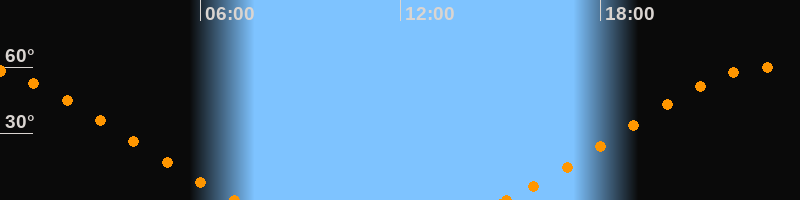 Höchster Stand (Kulmination)23:04 Uhr (h = 60°)