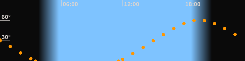 Höchster Stand (Kulmination)19:31 Uhr (h = 60.3°)