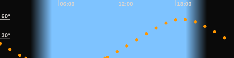 Höchster Stand (Kulmination)18:40 Uhr (h = 60.2°)