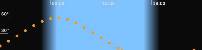 Höchster Stand (Kulmination)06:48 Uhr (h = 58.3°)