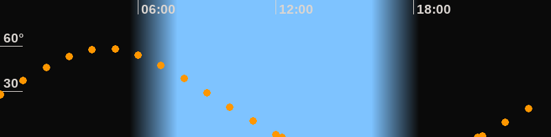 Höchster Stand (Kulmination)04:34 Uhr (h = 58.3°)