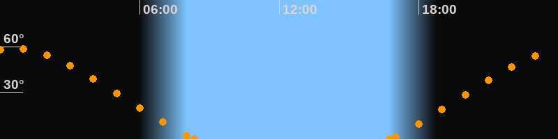Höchster Stand (Kulmination)00:31 Uhr (h = 58.8°)