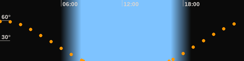 Höchster Stand (Kulmination)00:23 Uhr (h = 58.8°)