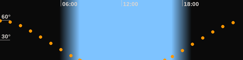 Höchster Stand (Kulmination)00:02 Uhr (h = 58.9°)